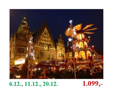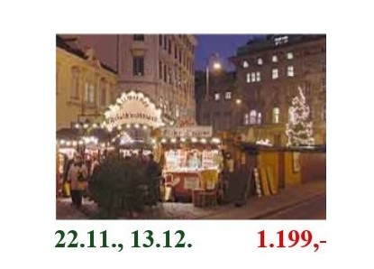 Prohlídka města, adventní trhy s vůní punče, svařeného vína, medu, klobás nebo bramborových placek za zvuku vánočních koled. Možnost ochutnávky nepřeberného množství lahůdek jako jsou pečené kaštany, čokoládové perníčky, horká čokoláda, cukroví a koláče.
